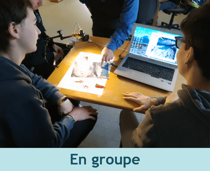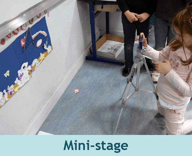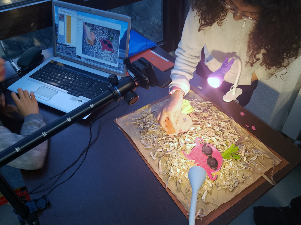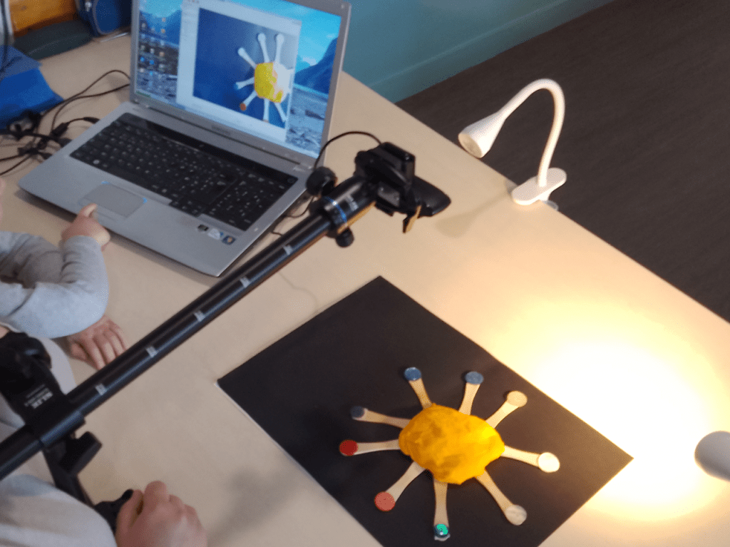 Un accompagnement est fait sur l’écriture de l’histoire, la réalisation du story-board, la création artistique des visuels du petit film (décors, personnages et objets), le tournage des images avec l’appareil photo et le logiciel d’animation et l’enregistrement des sons.
