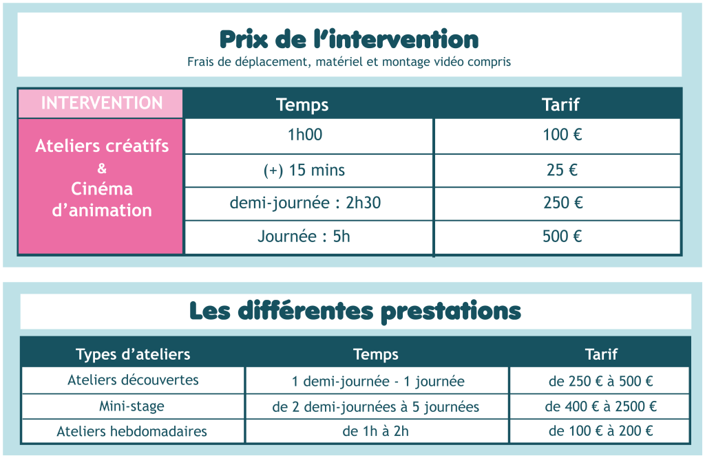 Joanna : « Lors de cet échange je pourrai vous donner des informations complémentaires sur mes différents formats d’ateliers et voir avec vous selon vos besoins, envies et financement, lesquels peuvent être adaptés à votre public, structure ou projet ».
