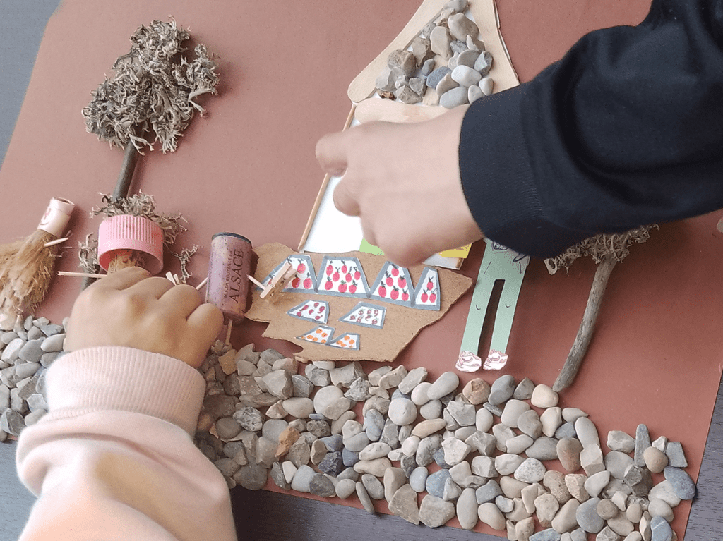 Différentes techniques possibles : papiers découpés, objets réels, pâte à modeler, création artistique (récup’, peinture, bricolage, dessins…)
