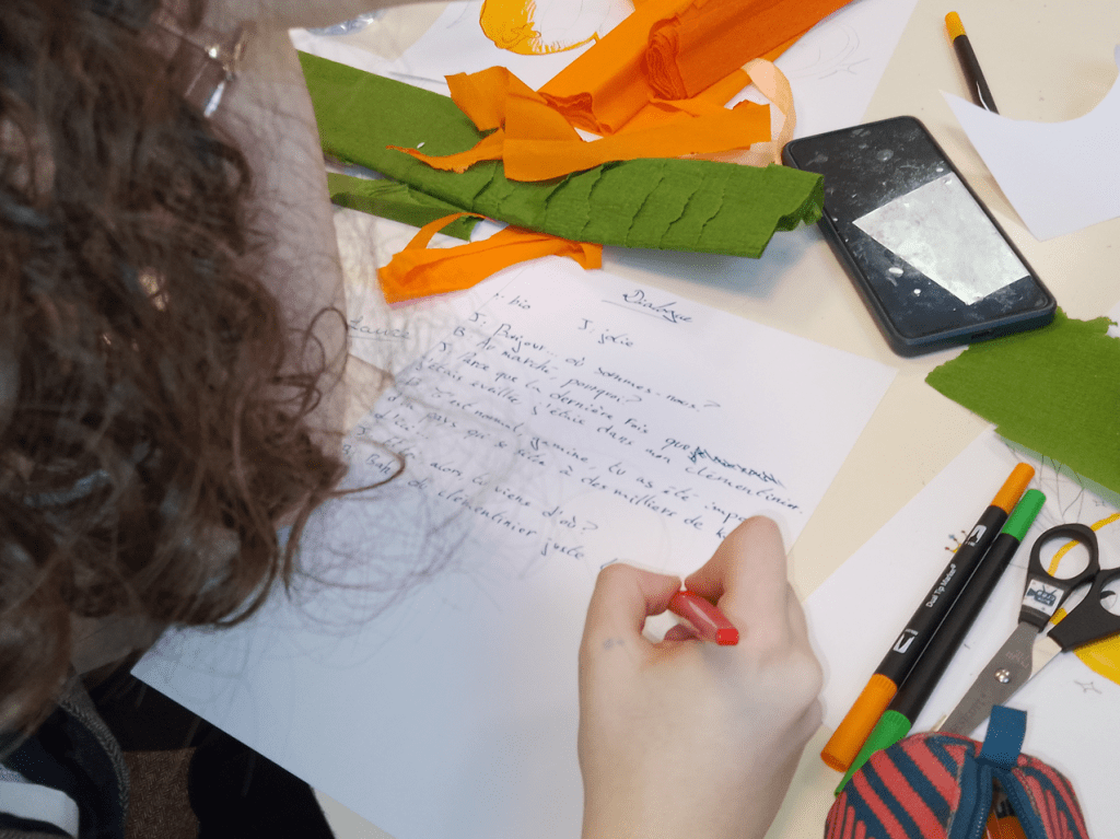 Une fois le court-métrage fini, l’intervenante réalise le montage vidéo. Ils finissent l’année avec un évènement festif ou ils visionnent leur vidéo sur écran géant ».